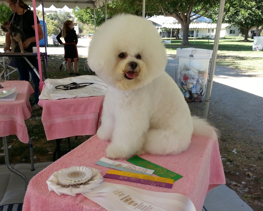 Cooper had a very nice weekend at the Cabrillo Kennel Club shows, with his second Best Of Breed awards in his last two shows. He also earned Deb a few Owner Handler points and got a Group 4 when he went in the ring with the Non-Sporting Group finalists. Way to go Coopie! I think you deserve an ice cream. It was a HOT weekend for everyone.