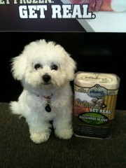 Holly posing with her favorite pet food…My Perfect Pet food. Holly’s parents, Audrey and Bogie, were both eating this REAL FOOD when she was conceived. Then Holly was weaned on the My Perfect Pet Buckaroo Blend.