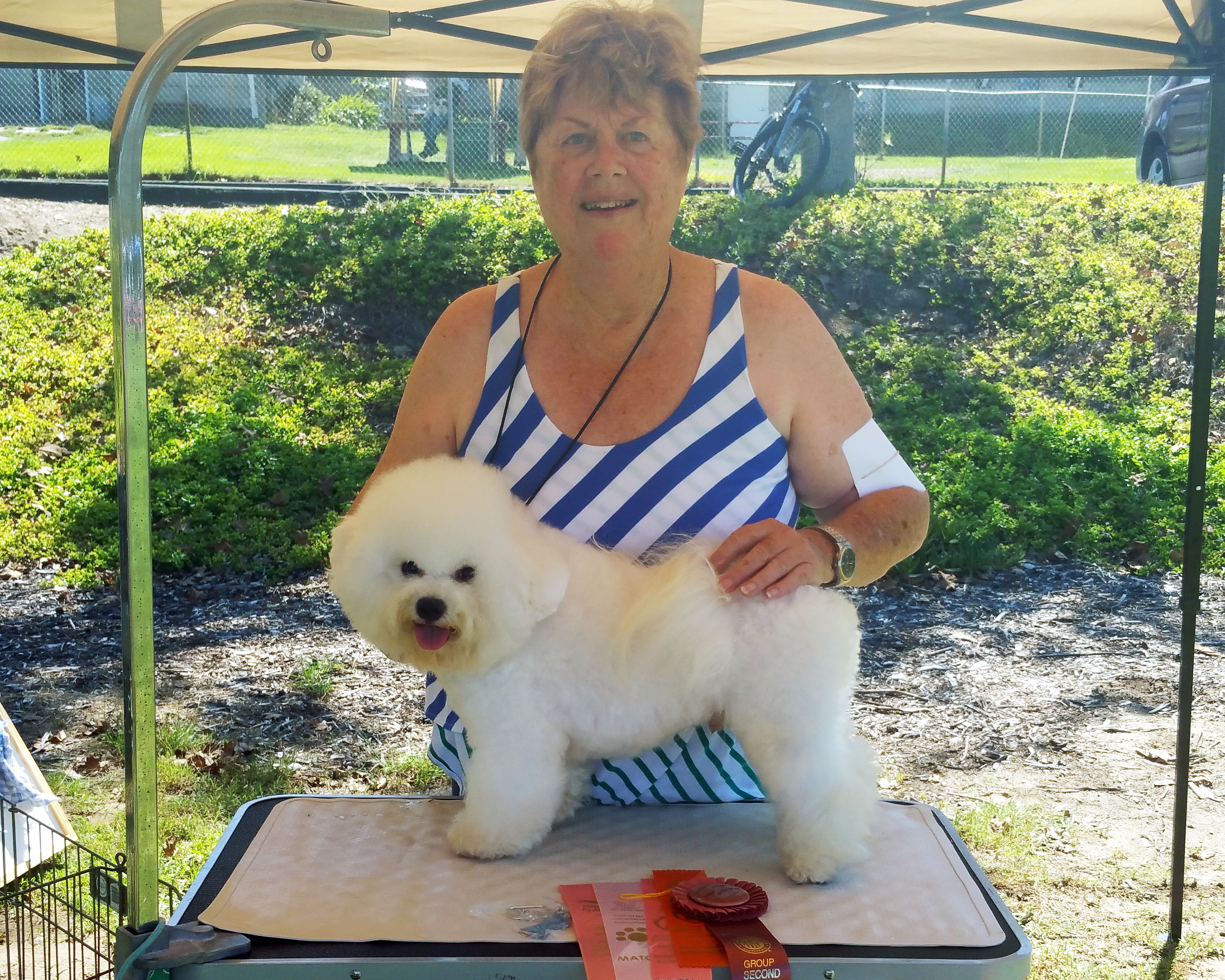 It was a HOT HOT HOT time at the Silver Bay Kennel Club AKC Sanctioned All Breed Match this weekend. The Bichons were represented by the Hollyhock Bichon youngsters with Deb Gibb, Linda Rowe and Jr. Handler Mara Hughes taking them in the ring.